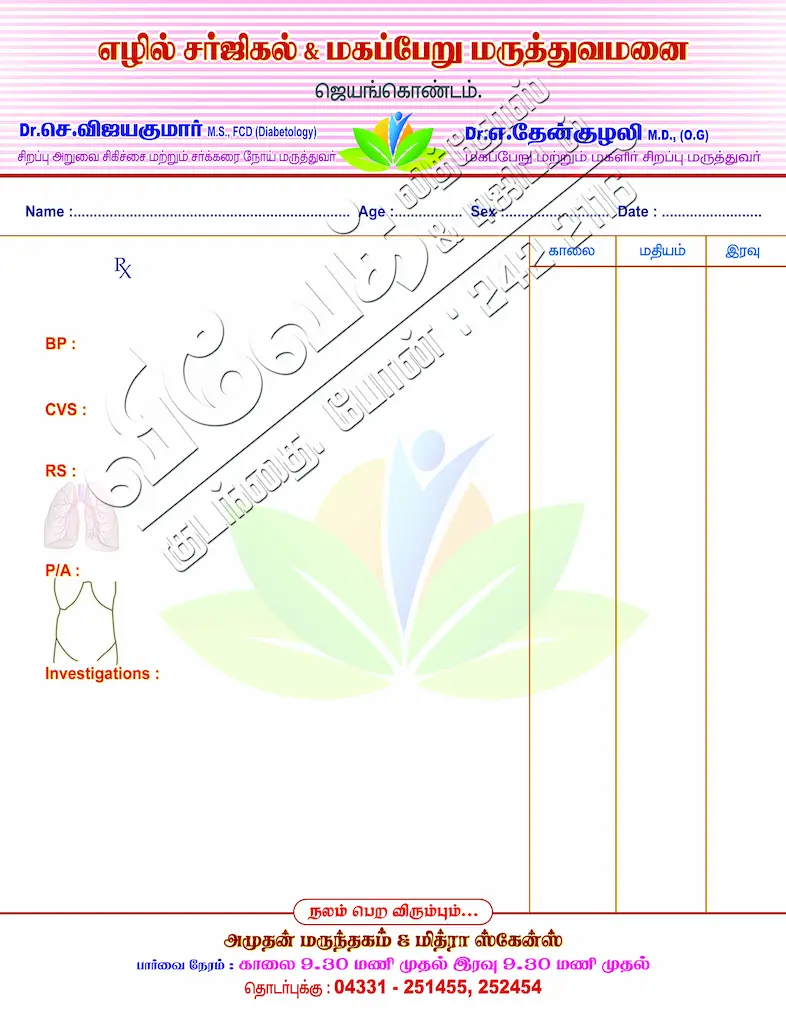 “Calender Cork, Flex Banner, Invitation Work, Letterpad, Bill Book, Photo Frame,Thamboolam Bag, Visiting Card, Frame Work, Notice, Litho Work(poster)”